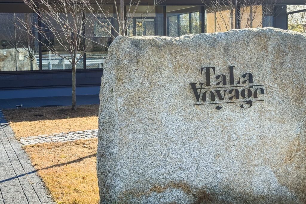 石に刻まれたTaLaBrewロゴが目印です。